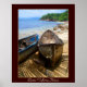 Två träkanoter vid den isolerade lekplatsen Las Caletas i Puerto Vallarta, Mexiko. Fotografi av Minerva Bloom. ANPASSA IT: välj din storlek, byt ut gräns mot färg eller ändra texten!