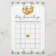 Sent temat babydusch-spelkort har en vattenfärgssluttningsbild och vattenfärgsgrey eucalyptus garland och elegant handskrivet stil-typsnitt.