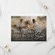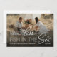 Modern sjöfartsliknande spara-datum-anmälan med ett foto av dig och din partner, det söta uttrycket 'två färre fiskar i havet', 2 sjöstjärnor, era namn och datumet för er kommande bröllopsdag.