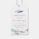 Vår kustnära design för sommarbröllop, förlovningsfester eller middagar inför bröllopet har ett kyssande par av blå akvarellfiskar som bryter upp från en stim av mindre fiskar längs botten. "Två färre fiskar i havet" visas i elegant marinblå bokstäver. Personliggör med två rader anpassad text.
