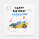 Två snabba 2:a födelsedag i barnbilarna Tävla Namn Party Pappra blöjor har texten "Grattis på födelsedagen (lägg till namn)" med färgstarka tävlor. För barn födelsedagsfest firande. Designad av Evco Studio www.zazzle.com/store/evcostudio