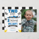 Två Fast 2 Nyfikna blå foto Inbjudningar
