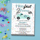 Två Fast 2Nyfikna blåsportbilar andra födelsedagen Inbjudningar