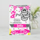 Två snabbbilsflickor i Tävling 2:a födelsedag Party rosa ,underbar inbjudan till grönt färg och gult färger om bästa födelsedag med familj och vänner och älskare och pappa och mamma och och och och