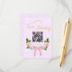 Hon är två finare! 2:a födelsedagsinsamlingen med en rosa-bog bland en krans av ro. Skripttypografi i guld mot bakgrund av pastelllila