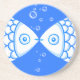 Två fiskpisser blå vit Abstrakt Mönster Underlägg