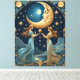 två flickor som målar magi med måne canvastryck