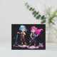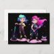 Två flickmusiker spelar sten gitarrer tillsammans. De leker och känner sig glada. Blue bär snyggt byxor i en bur och punkterar suspenderarna för stil med en Mickey Mouse T-shirt. Röda har en snyggt och en bra apparat som betonar hennes personlighet. Bilden är ljus och glatt med en underbar fullt av harmoni och lycka. De gör en underbar musikalisk duo.
