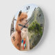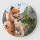 Två fluffy alpacas mot bakgrund av sjö stor klocka