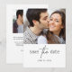 Det här fotot sparar datumet då bröllopsinbjudan har en modern funktion för att spara datumtypografin. Baksidan har en ställe för ett foto och ett textområde för all information.