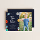 Två Måne! Täck ut rumstema 2:a födelsedagarinbjudan. Ett fotokort, marin blå bakgrund med stjärnor, måne, planeter, astronauter och raketfrakt.