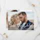 Detta fantasifulla och eleganta spara-datum-kort har två av dina favoritfoton, med trendig vit handskriven skrift. En enkel och modern look som passar perfekt med din stil!