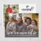 Det här kortet med två bilder för flyttmeddelande är ett enkelt sätt att dela dina goda nyheter med vänner och familj. De kommer att älska att få en skymt av huset och se hur barnen har växt. Det främre fotot täcker hela framsidan av kortet. "Vi har flyttat till" är skrivet med en mycket populär vit script-font. Oroa dig inte, det finns en särskild överlagring mellan teckensnittet och scripten, så att scripten alltid syns. Du kan dock ändra färgen om du vill. All text i den här mallen är också redigerbar och anpassningsbar. Det bakre fotot tar upp hälften av kortet. Den andra halvan är platsen där du kan infoga ett förtryckt meddelande. Den här gör-det-själv-mallen för flyttmeddelande har gott om utrym