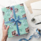 Med denna papper för omslagning av söt Helgdag kan två av dina egna fotografier gå i centrum. Fotografierna är åtskilda av en söt röd jul ro och evergreen bouquet, och snö snurrar runt dem. Din anpassningsbar står i teal runt fotografierna. Allt placeras på blekens mint grönt-bakgrund. Söt papper det är personlig för dig!
