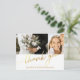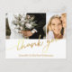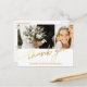 elegant 2-fotokollage guld-skript tack för bröllop-vykort