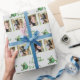 Papper julomslutning med två bildmallar. Ljus grått med grönt, grönt ramar för fotona och grönt träd med färgband. Överför två foton som ska mönstras över pappra för att skapa rader i bilder. Hälsning är "God jul" och är lätt att ändra till vad du föredrar. Ett roligt sätt att backa presenter, på papper kvalitetssäkring, för vänner och familj.