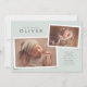 Två foton från stil i skräpboken gör det här lilla födelsemeddelandet i grönt extra unikt. Perfekt för att visa ett par foton vid en enkel tidpunkt. Med det här kortet presenterar du nyfödd bebis för vänner och familj i stil. Den mörkare grönten som samordnar baksidan har söta vita prickar.