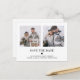 Den här enkla och snyggt svarta och vita vykortet i bröllop spara datum har klassisk, elegant svart text med motsvarande hjärta och en punkt för dina namn- och bröllop-detaljer. Det finns också utrymme att visa två av dina favoritfoton för ett modernt sätt att informera dina vänner och din familj om ditt kommande bröllop.