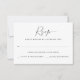 Elegant enkel design med modern kalligrafi och typsnitt. Det finns en gästräknare för två gäster att svara. Baksidan har ett menyval och formulering för matallergier (och kan även tas bort).