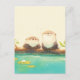 Det här hjärtvärmande vykortet visar ett par knubbiga, saliga utter som sover bredvid varandra på en soldränkt stock. Konsten är gjord i en mjuk, eterisk akvarellstil med en primär palett av uppfriskande turkos och varmt gyllene grädde. En ensam vit vattenlilja flyter i det lugna, skimrande vattnet nedanför, medan ömtåliga bubblor stiger genom den luftiga, ljusa bakgrunden. Med sin lugna stämning och mjuka, måleriska texturer fångar den här bilden essensen av vänskap och avkoppling. Det här vykortet är ett perfekt val för att skicka en hälsning till en bästa vän, ett "tänker på dig"-meddelande eller en glad sommarhälsning.