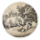 Den här designen har en etsning med ett vattendjup och grått tvättat av den engelska konstnären George Morland (1763-1804). Två grisar sover i halm. Det är ett vackert landskapsliv. Beroende på hur bilden beskärs för att skapa en perfekt som passar för just det här objektet kan du få tag på G.M. i initialer på ett av stängningsposterna. Du kanske också kan upptäcka en särskilt djärv fågel som står stolt över en annan staket.