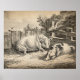 Den här designen har en etsning med ett vattendjup och grått tvättat av den engelska konstnären George Morland (1763-1804). Två grisar sover i halm. Det är ett vackert landskapsliv. Beroende på hur bilden beskärs för att skapa en perfekt som passar för just det här objektet kan du få tag på G.M. i initialer på ett av stängningsposterna. Du kanske också kan upptäcka en särskilt djärv fågel som står stolt över en annan staket.