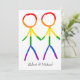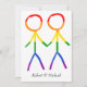Det här sparandet av datumkortet har en vacker och enkel design som tillkännager ditt kommande bröllop. Bilden visar två manar i form av elegant stick figurer, som håller händer. Figurer är färgad i en vacker regnbåge som symboliserar kärlek och mångfald. Det här kortet är ett fantastiskt sätt att få en sammanhängande och meningsfull kontakt med din kontorsutrustning och samtidigt ge gästerna ett tydligt och elegant sätt att markera sina kalendrar.