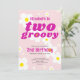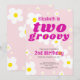 Två Groovy 2:a födelsedag Rosa Flower Power Hippie Inbjudningar