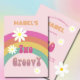 En söt andra födelsedag. Färgstark regnbåge och blommor med retromodern text. Ändra informationen för egen information och ord. Söt och rosa. Välj bland ett antal pappra typer. Från en rad stationära från Chessies Bra Design.