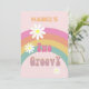 Två Groovy Blommigt Modern Rosa Birthday Inbjudningar
