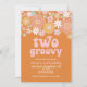 två Groovy Retro-Blommigten 2:a födelsedag Inbjudningar
