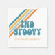 Två Födelsedagsfest av Groovy Retro Stil blöjor med gult, orange och blått rand.