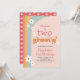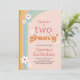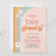Flickans födelsedagsfest inbjudan har en roligt 70:s stil-design med texten "två grav". Utformningen accentueras med boho färg, vita daisy och stil.