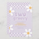 Två Groovy Retro Rutig Lila Tusenskönas Inbjudningar