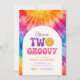 Två Groovy Retro Tie Dye 2:a födelsedagen Inbjudningar