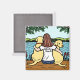 Söta två Gulters Labradors och Mamma (med längre hårkornighet) magnet. Vackra gula Labs och deras mänskliga Mamma har en bra vila vid sjö. Vad pratar de om? Bra gåvor till hundälskare som kärlek Gult Labrador! Skapat av Naomi Ochiai.