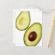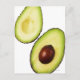 Två halvor av avokado, på vitt vykort