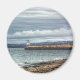 En skyddsräcke vid två Harbors strand. En fyr styr fraktaserna runt väggen och in i hamnen.