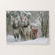 Två hästar ritade Open Sleigh på Snowy Väg i Skoge Pussel