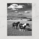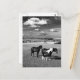 Atmosfärisk svartvit bild av två hästar i fält mot ett dramatiskt himlar