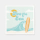 Två sjön! Surfing Beach 2:a födelsedagen party napkins med turkos av vågar och orange surfa board.