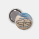 Vackert, originalfoto av två hjärtan, skrivet, ritat i sanden längs det blå oceanen vatten för att beteckna kärlek och romantik. Sätt enkelt in datumet för den speciella stora dagen och placera dina egna namn i hjärtat för att anpassa sig. Underbart koncept för kommande sommarsemesterdestination för bröllop Spara datumet, eller ändra enkelt texten för tack till party favors för dina gäster osv. Visar den mindre storleka runda magneten och andra storlekar och former är tillgängliga.