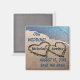 Vackert, originalfoto av två hjärtan i sanden längs det blå oceanen vatten för att beteckna kärlek och romantik på en populär kvadratmagnet. Sätt enkelt in datumet för den speciella stora dagen och placera dina egna namn i hjärtat för att anpassa sig. Underbart koncept för kommande sommarsemestermål för bröllop Spara datum, årsdag firande eller ändra enkelt texten för tack till party favors för dina gäster osv.