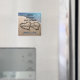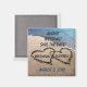 Vackert, originalfoto av två hjärtan, skrivet i sanden längs blåhavet vatten för att beteckna kärlek och romantik. Sätt enkelt in datumet för den speciella stora dagen och placera dina egna namn i hjärtat för att anpassa sig. Underbart koncept för kommande sommarsemesterdestination för bröllop Spara datumet, eller ändra enkelt texten för tack party favors, etc. En unik, kvadratisk anpassningsbar formad magnet-keepé för dina gäster.