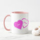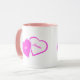 Alla hjärtans dag-mugg med vackra bilder av rosa och vita hjärtan. Bilderna, bakgrunden och texten kan anpassas. Originalkonst av W.B.