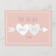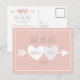 Ett sött vykort med två hjärtan som sparar datumet med en dammig rosa bakgrund designad med kärlek av Aubergine och Purple. Perfekt för ett romantiskt bröllop. Brud och brudgum namn tillsammans med datum är anpassningsbara.
