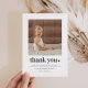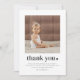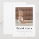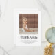 En modern och söt tacksamhetskort för 2-års födelsedag med ditt eget foto och ordet 'tack' med ett hjärta bredvid. Du kan också redigera alla textfärger och stilar, plus hjärtats färg om du vill. Klicka bara på knappen 'Personifiera' -> 'Redigera med designverktyg'.