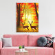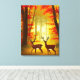 Canvas på en illustration av två hjort, en bock och en doe, mot bakgrund av skogen under hösten, i skuggor av bruna, gyllene gult och rost orange