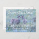 Vacker hjort i en äng med vilda blommor fotografering på detta Spara datum bröllops kungörelse vykort.