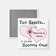 Vilket underbart sätt att tillkännage era kommande bröllop-planer, med dessa söta magneter. Primitiv grafik från land av två rosa hjärtan som sytts tillsammans med en blomma i mitten. Bildtext, överst och grund, två hörn.... Bli en! Den blå texten är aktuell och namn är helt och hållet anpassade till kostym som du behöver.